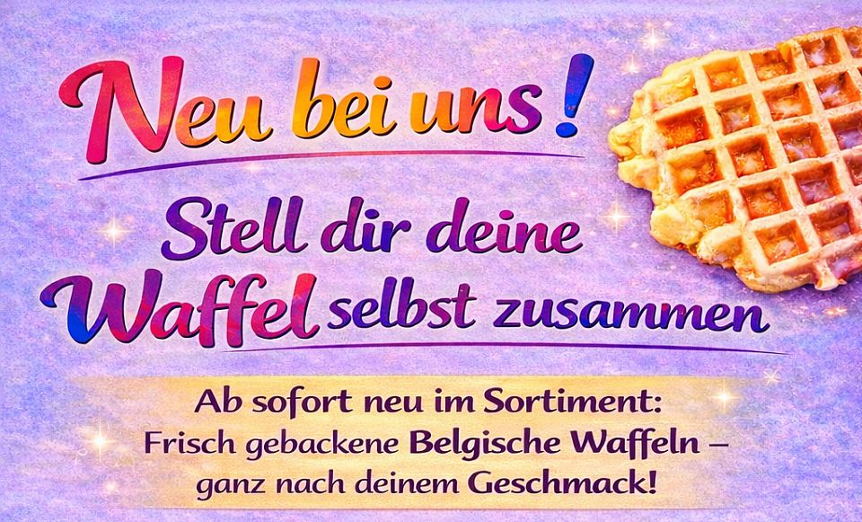 Neu: Stellen Sie sich Ihre Waffel selbst zusammen, mit vielfältigen Toppings so einzigartig wie Ihr Geschmack!